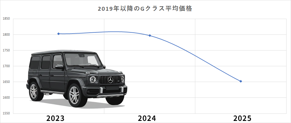 そう言われ続けてきたGクラスですが、2025年頃から相場が下がってきているという声も多く聞かれるようになりました。