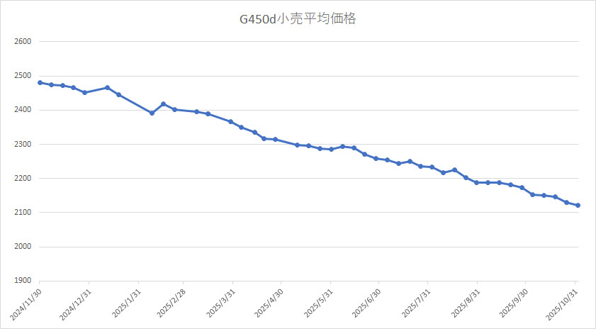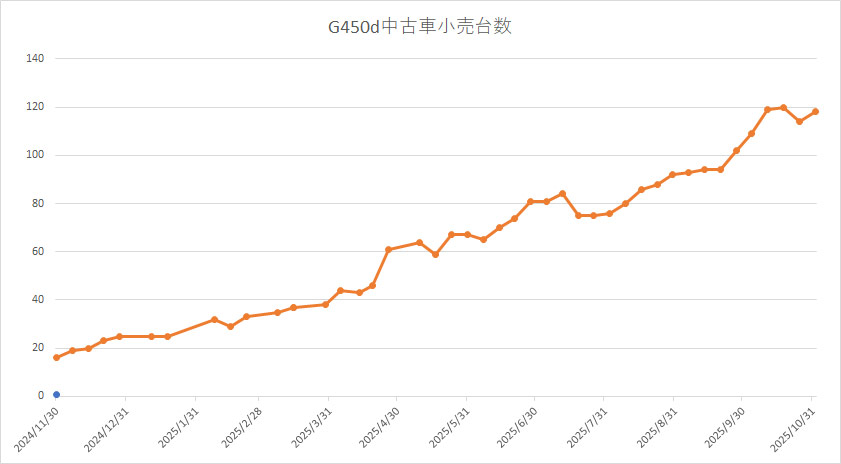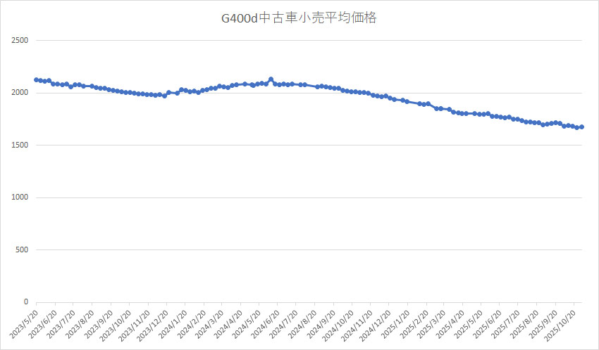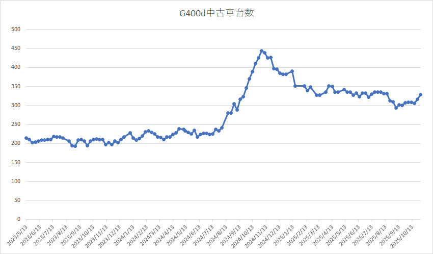 G450dの登場・供給により新型の台数が増えると前型に当たるモデルは下落傾向ではあります。